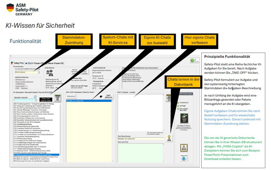 Safety-Pilot formuliert zur Aufgabe und den systemseitig hinterlegten Stammdaten die Aufgaben-Beschreibung