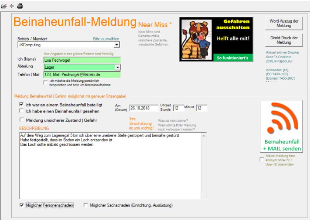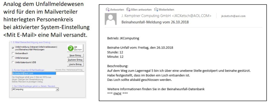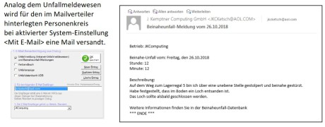 hinterlegten Personenkreis bei aktivierter System-Einstellung <Mit E-Mail> eine Mail über die Beinaheunfall-Meldung versandt.