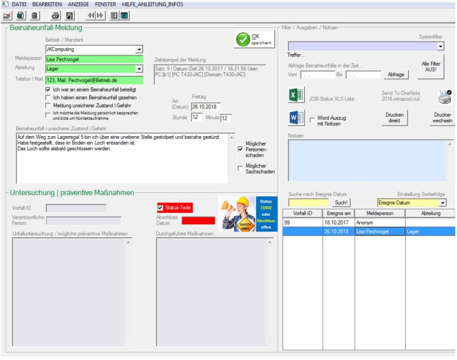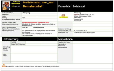 Das Near-Miss Meldesystem des PC-ASM eignet sich für die Meldung von Beinaheunfällen, gerfährlichen Situationen und Störfällen jeglicher Art.